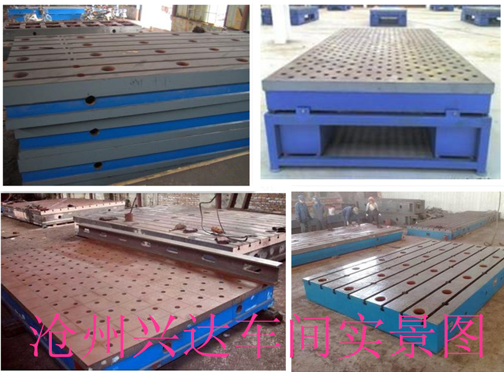 鑄鐵鉚焊平板的材質是高強度灰鐵HT250,這種材質穩定性好,不易變形,經過回火后效果更佳明顯。